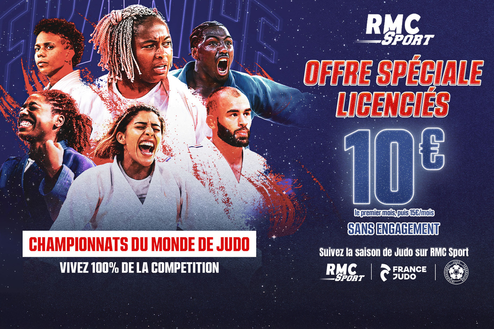 France Judo en partenariat avec RMC Sport vous propose une offre exceptionnelle* réservée aux licenciés France Judo : accédez en exclusivité à l’intégralité des plus grandes compétitions de judo en direct.